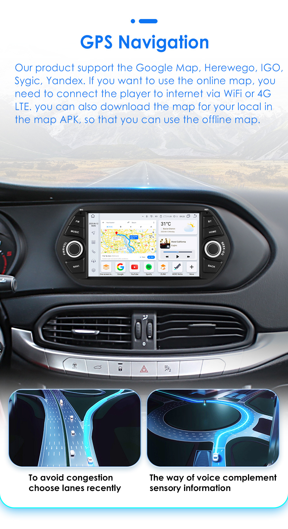 7-inch Android 12 car navigation suitable for Fiat Egea 05-17 car center console WiFi Bluetooth playback