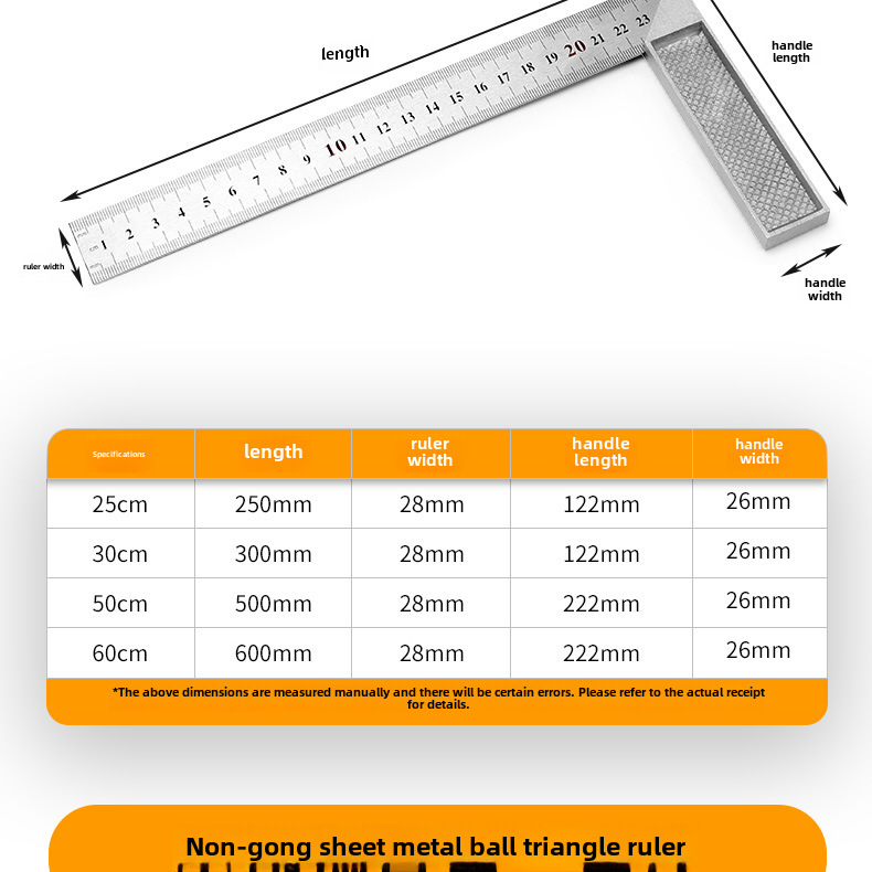 - Large Size L-Shaped Angle Ruler:This robust angle ruler, measuring 90 degrees, is designed in an L-shaped pattern for ease of use and versatility. Its large size makes it suitable for various scenarios.